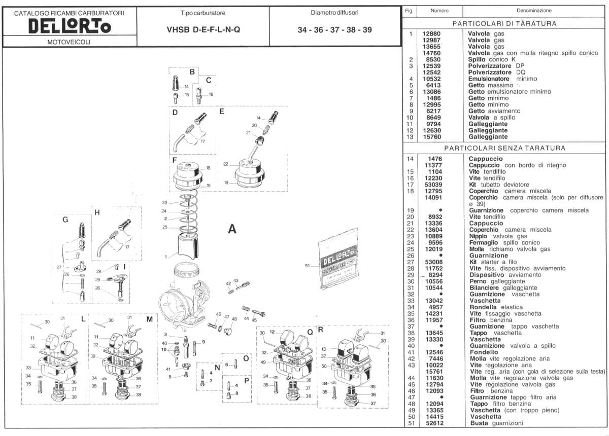 Parts diagram for Dellorto VHSB carburetors