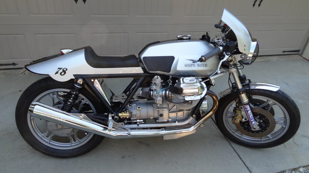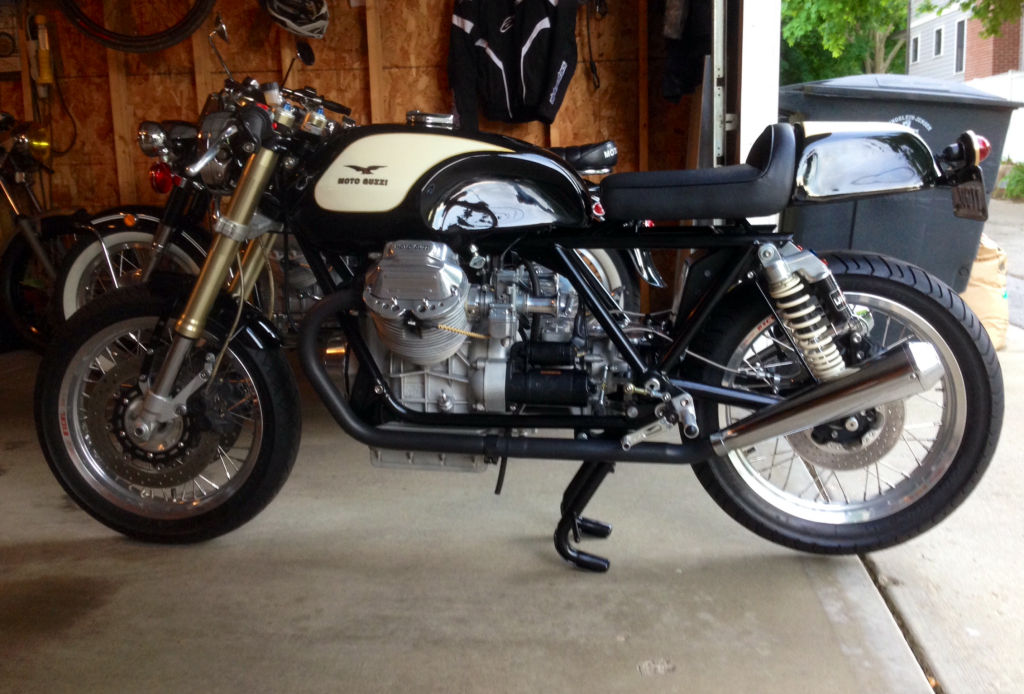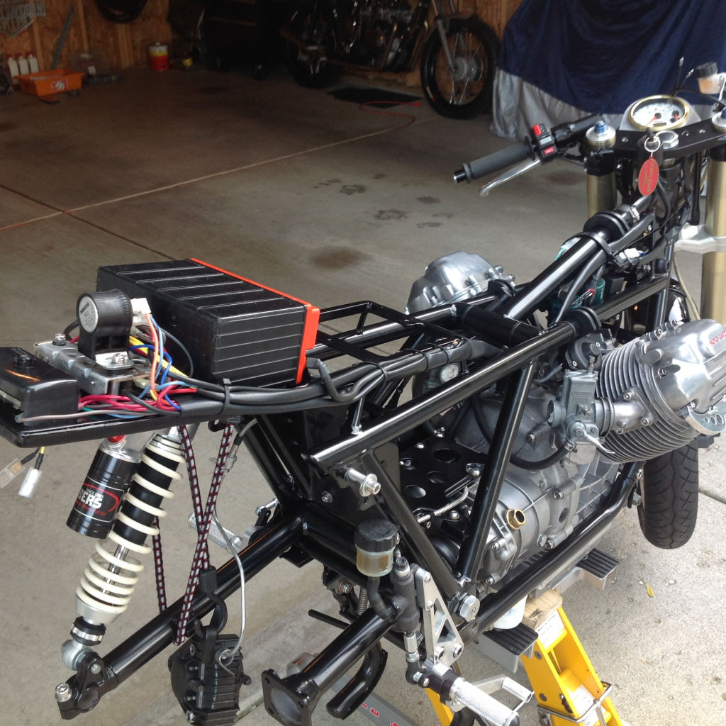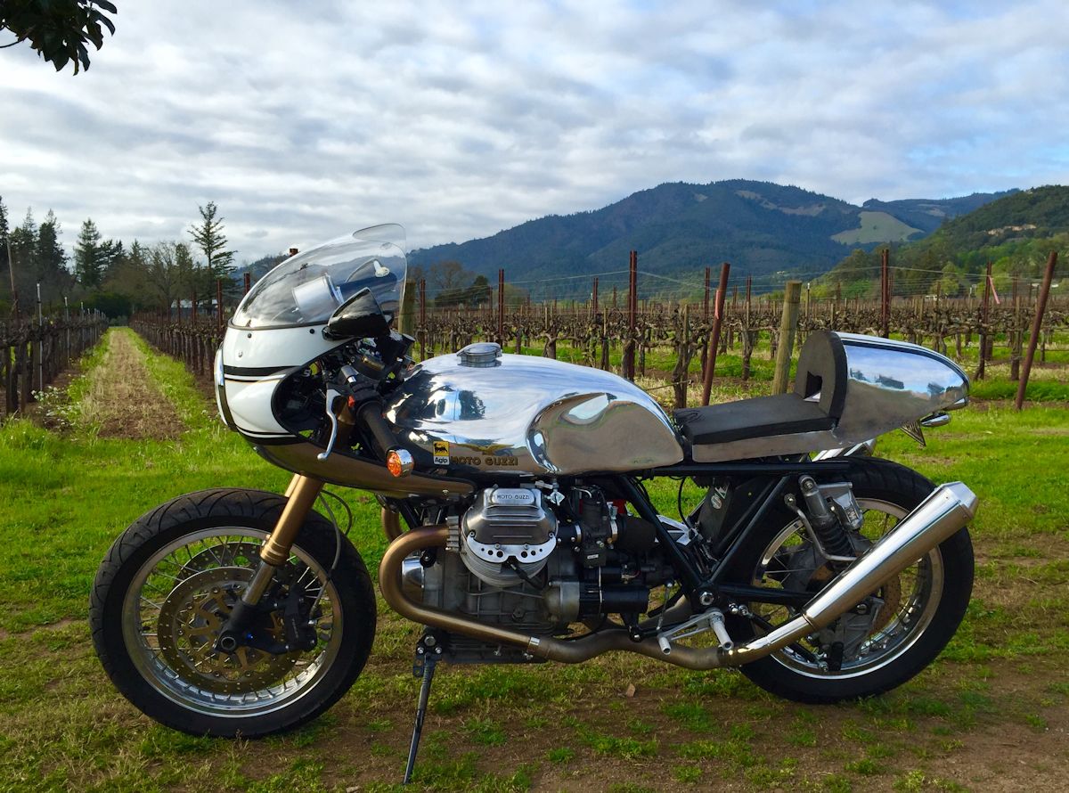 The photo below is of Kevin Cherry's wonderful Moto Guzzi V1000 G5 based custom with a Suzuki GSX-R front end. I built a complete wiring harness for Kevin. A note from Kevin: