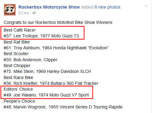 Best Café Racerat the 2015 Road America's Rockerbox Festival with all four judges from Motorcycle Classics Magazine voting unanimously.
