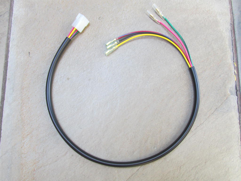 Replacement wiring for the right handlebar switch Ready for your switch (MG# 17635000 or MG# 18735040). Wires are 800 mm in length. Upon request, the wires may be left separate from the 3 terminal plug - so that the wires may be more easily routed inside to the handlebar.
