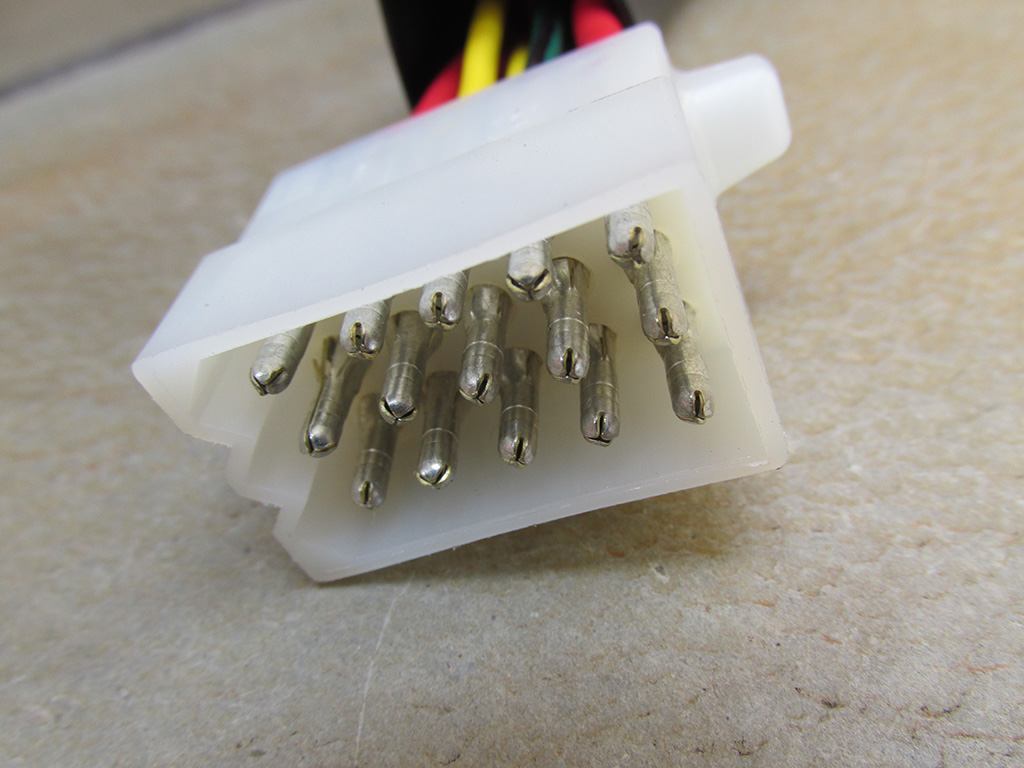 12 terminal Molex plug and 12 male terminals Useful for installing on a universal left handlebar switch. |