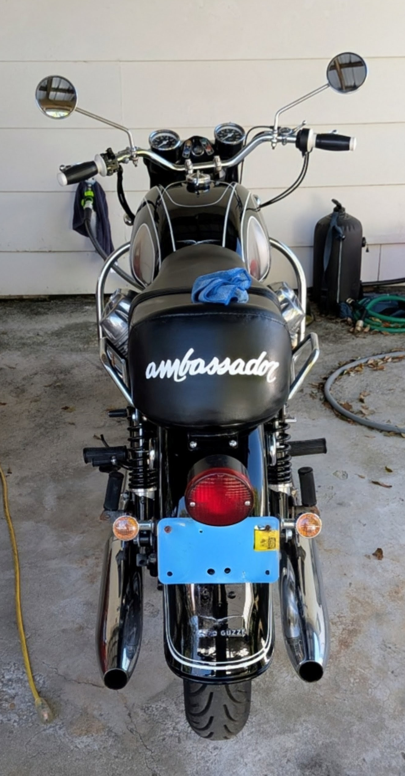I also tackled the seat lettering like we talked about. I messed around with using the original MOTO GUZZI Lettering but couldn't settle on a size or placement I liked. Instead I decided to mix it up and found the font for ambassador from an old Moto Guzzi ad. It might not be the right thing for purist but I'm happy with it. To put it on I attempted a few things. I bought a cheap die cutter (Cricut) from Facebook marketplace. I first tried cutting out a stencil and using it to paint on the lettering with an acrylic leather specific paint I got at Michaels. It turned out terribly so I cleaned it all off with acetone and decided to try using the die cutter to cut a vinyl sticker seeing as the stencil I used stuck so well to the seat. This looked great for a week until it started peeling up. Ultimately I used heat transfer vinyl and applied it with a heat gun and a dough scraper to apply pressure. Turned out pretty good and has held up perfectly for the past month even through rain and a few heat cycles. Pictures are attached, I figured it could be useful info for anyone else attempting the same.