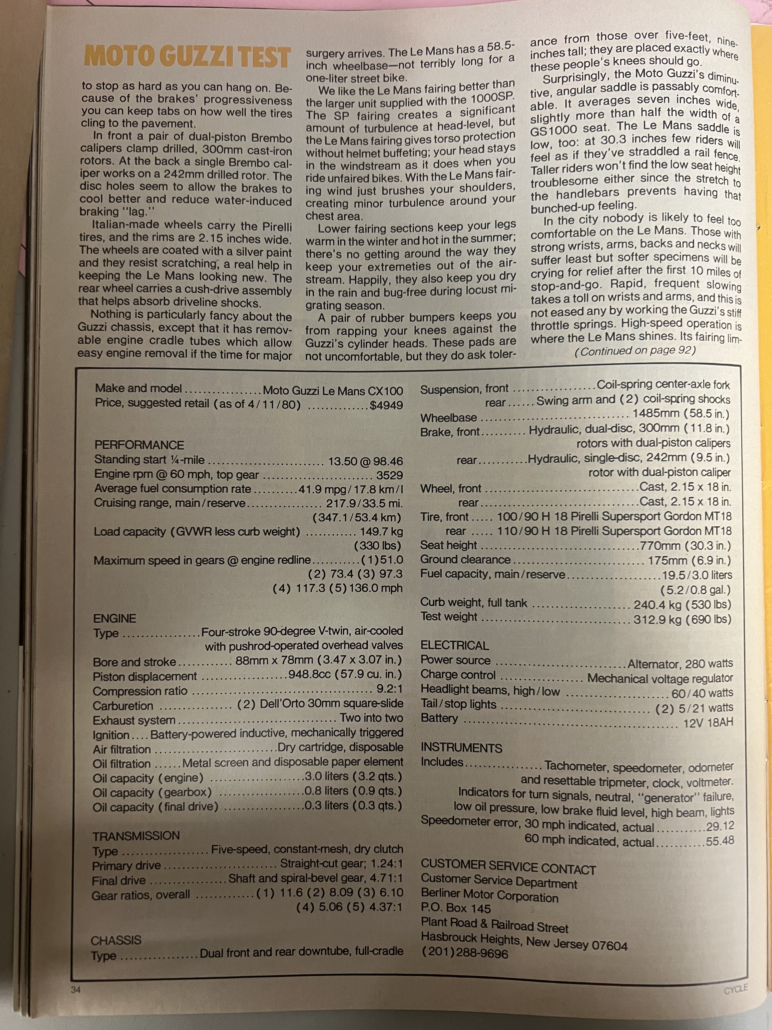 Article - Cycle () Moto Guzzi Le Mans CX100