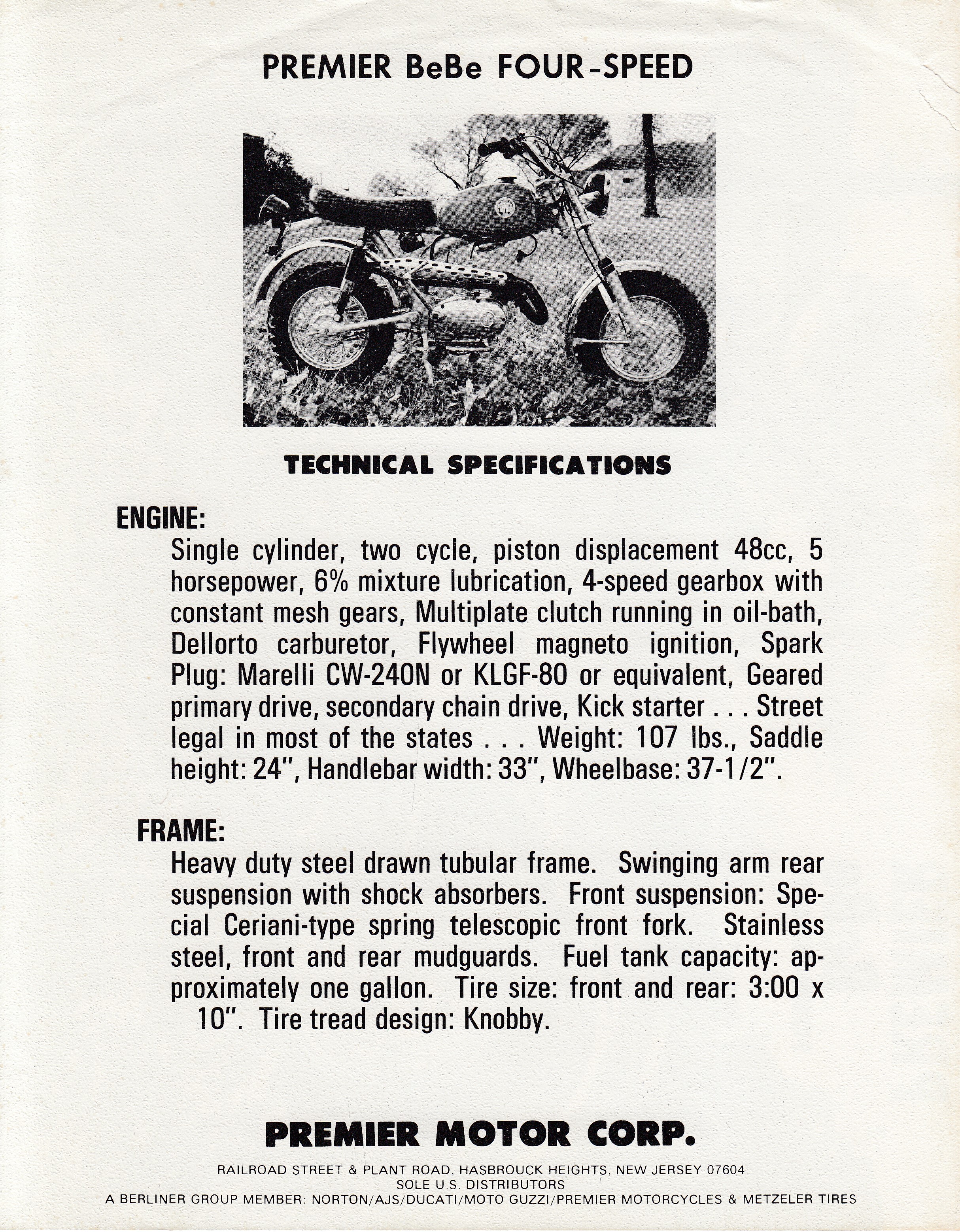 Brochure - Premier Be Be four-speed mini bike