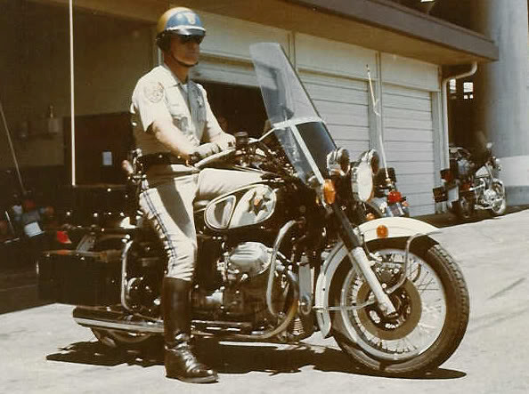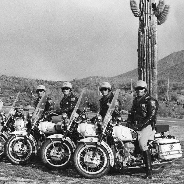 The reason I love Moto Guzzis. Arizona Highway Patrol, abt . Skip Fink on the left. Close Friend. Doug Pfieffer in Center.